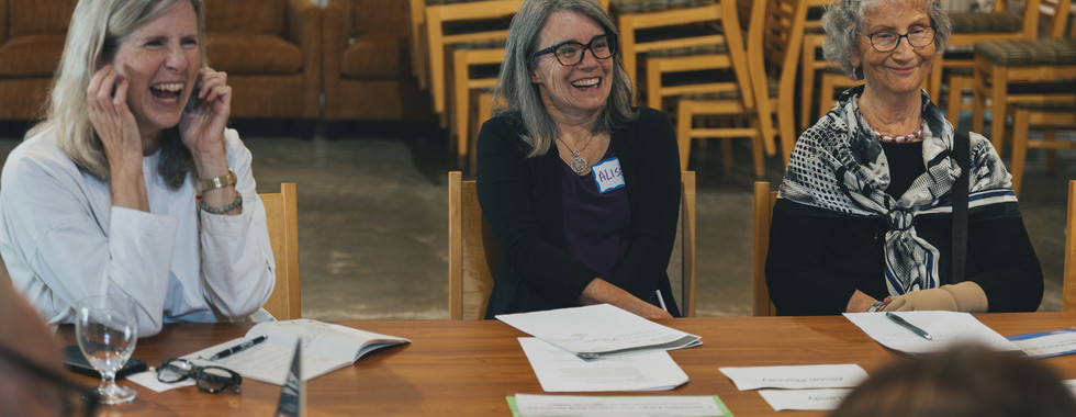 Three community partners participated as “storytellers,” sharing the stories of their communities, their initiatives, and their efforts to make their communities more inclusive of people who live with dementia and their care partners. They each spoke to a different group of twelve “wisdom catchers,” who listened actively for specific themes and shared back to the storytellers what they heard related to their theme. When the groups were done sharing their insights, the wisdom catchers gathered in “theme” groups (themes included elements like “obstacles”, “breakthrough moments” and “leadership”) to compare ideas. In the end, all groups came back together to share what they had learned across all the stories and harvest the collective wisdom.